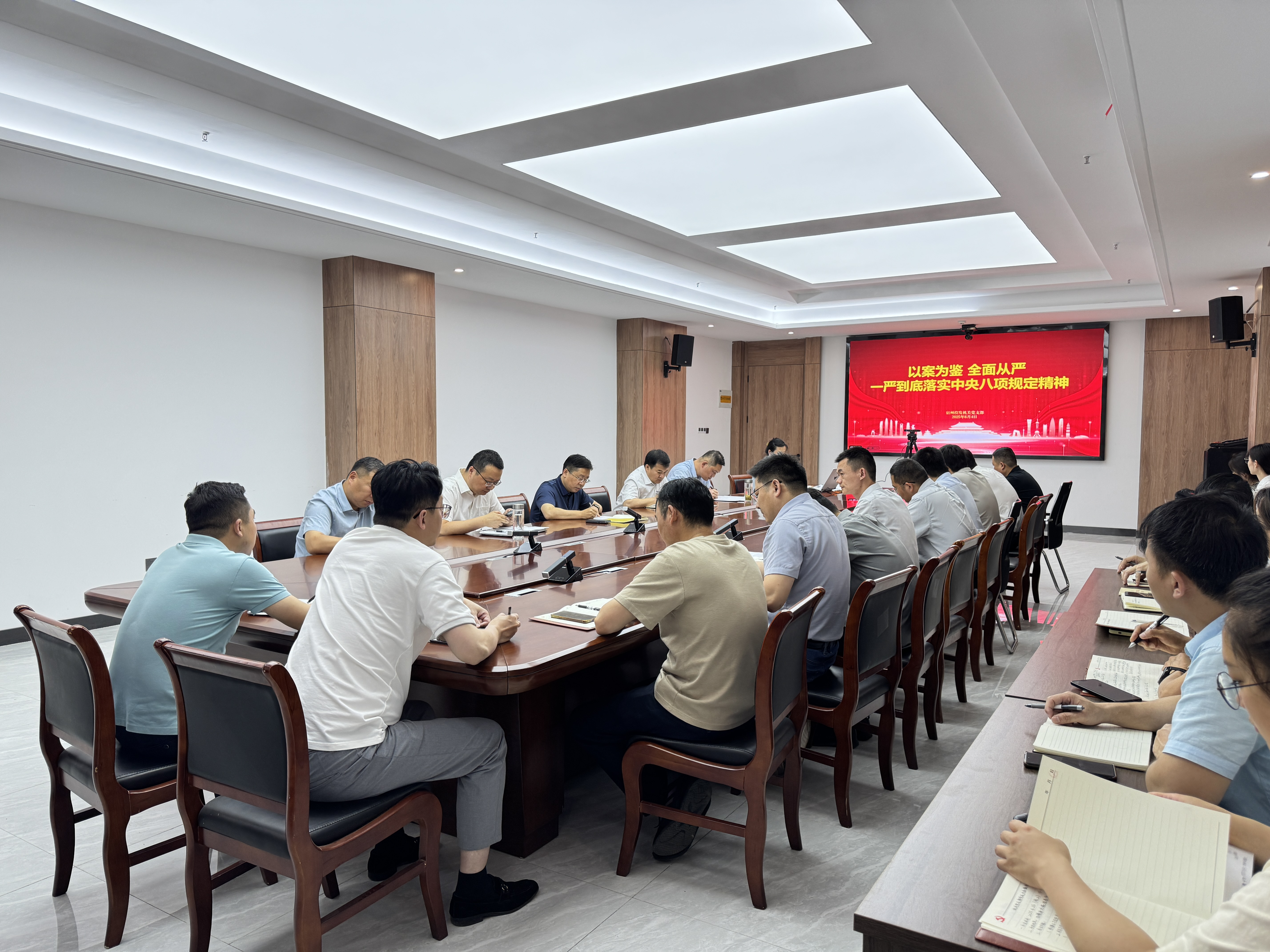 6月4日,建工宿州投發公司機關黨支部召開“以案為鑒 全面從嚴 一嚴到底落實中央八項規定精神”主題會議,會議由機關支部書記徐晶晶主持,機關全體黨員參加會議。