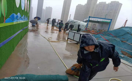 截至2021年7月20日17時(shí)許,大雨依舊沒有停歇,但項(xiàng)目人員沒有絲毫緊張,因?yàn)槲覀冏龊昧顺渥愕臏?zhǔn)備,防汛工作段段有人管、層層有人抓、工作有檢查、任務(wù)有安排,全力作答防汛“考卷”,保障公司財(cái)產(chǎn)和項(xiàng)目參戰(zhàn)人員的安全。