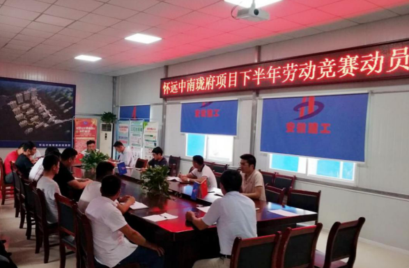 競賽中,銅陵吾悅廣場項目根據關鍵節點有針對性的編排工作計劃,對S4丶S5丶S6屋面防水、樓梯間涂料及地下室機電安裝等進行專項跟蹤。同時對施工班組下達任務書,約談施工隊伍,嚴格按照時間節點執行,組織管理人員對現場進行分工消項,協調各班組有序施工,嚴格把控質量,處理遺漏問題。每天召開生產調度會,對當日未按照節點完成的班組進行處罰,各班組匯報當日施工人員,與各自的工作進展,項目部第一時間解決問題。懷遠中南·瓏府項目在施工期間遭遇當地多年罕見汛期,防汛度汛形勢異常嚴峻,工期受到嚴重影響。面臨汛前節點工期壓力,項目領導班子就勞動競賽方案在汛期的工作內容進行了調整,帶領員工在保證質量和安全的同時加班加點,克服重重困難,沖在一線,保證產值目標順利完成,在堅持不懈的努力下,中南·瓏府項目于9月15日順利完成公司質量月觀摩活動。文一塘溪津門項目為保障項目快速推進,爭搶工期,根據現場實際情況采取相應的措施,嚴格執行例會制度,準時召開調度會,確保各項工作高效有序推進。