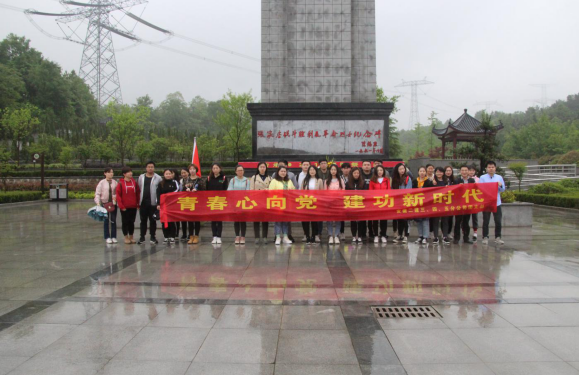 4月29日上午,31名團員青年乘坐大巴來到了張店鄉無名革命烈士陵園。一行人自覺排列好隊伍,由兩名青年抬著花籃,莊重肅穆地敬獻于廣場中央的紀念碑前,全體人員鞠躬默哀。隨后,面對團旗,團員青年們舉起右手重溫入團誓詞,響亮而堅定的誓詞響徹廣場。乍暖還寒,細雨從天空落下,在同志們的發絲凝結成小水滴,也絲毫不影響大家的熱血和激情。