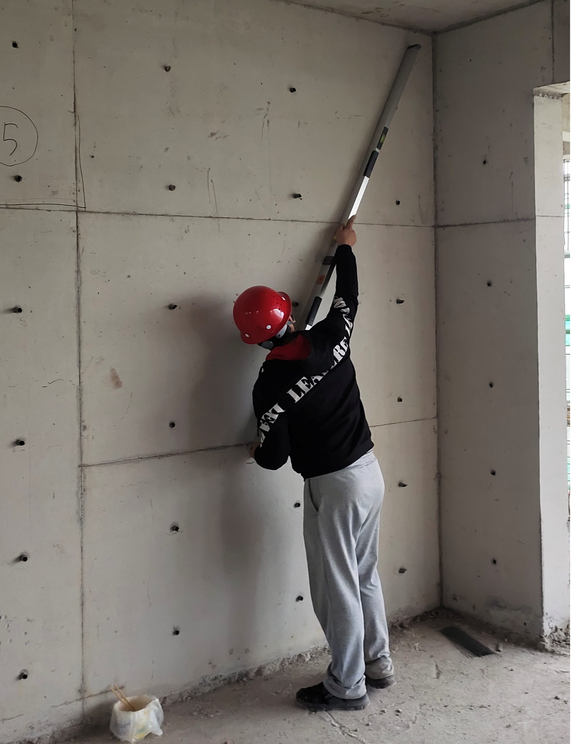 質(zhì)量員節(jié)日期間全過程堅守現(xiàn)場,保證模板鋼筋、混凝土澆筑等施工環(huán)節(jié)標準規(guī)范,精準推進。現(xiàn)場對混凝土墻體進行回彈檢測和實測實量并及時進行實測數(shù)據(jù)上墻,檢查、發(fā)現(xiàn)、記錄、整改問題。